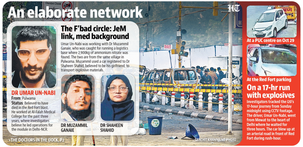Following the meetings, Shah ordered NIA to take over the investigation into the terror module, citing the possible inter-state linkages and the agency’s coordination with global intelligence networks, a senior official, who asked not to be identified, said. “The preliminary assessment suggests that a transnational radical network could be behind the blast. All angles are being examined,” the officer added.Also Read | Red Fort blast probe: Car parked 11 days at F’bad medical college